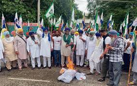 Protesters burn an effigy of the Central Government in Patiala. Patiala, August 1 Activists of the Kisan Mazdoor Morcha and