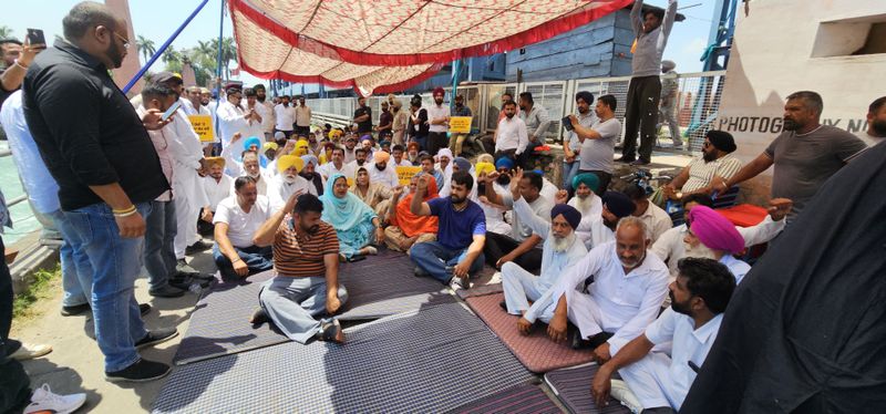 About 300 workers of the BKU (Rajewal), led by their president Balbir Singh Rajewal, staged a dharna outside the office
