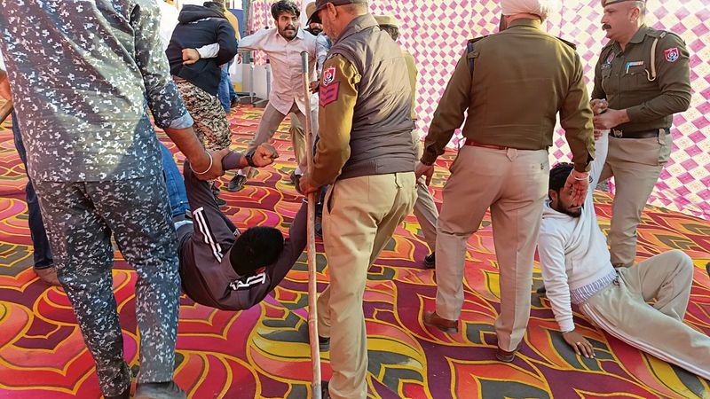 The policeallegedlyused force to remove ETT cadre’s 5994 unemployed teachers spotted at a programme organised by the Balluana unit of