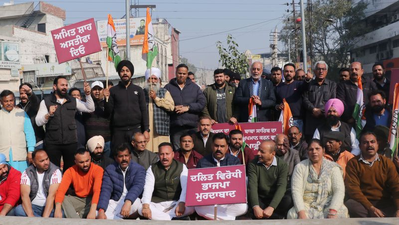 District Congress leaders held a protest against Union Home Minister Amit Shah for his alleged comments against Dr BR Ambedkar