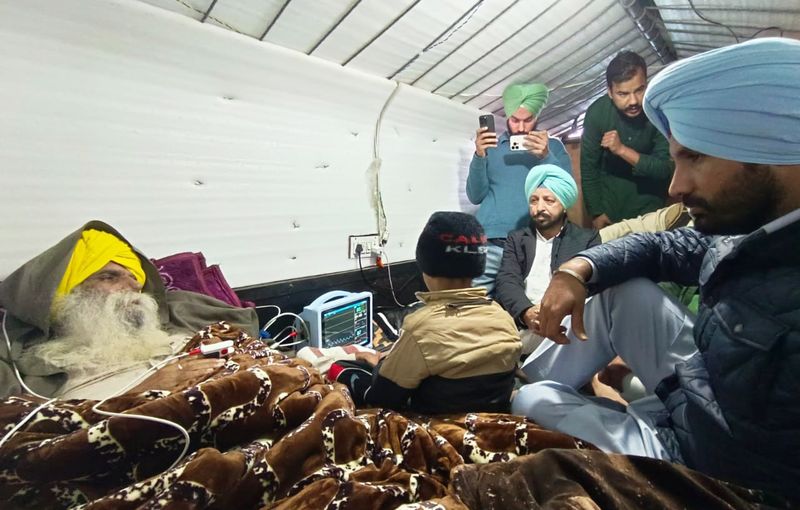 Samyukt Kisan Morcha (Non-Political) convener Jagjit Singh Dallewal, who has been observing an indefinite fast at the Khanauri protest site