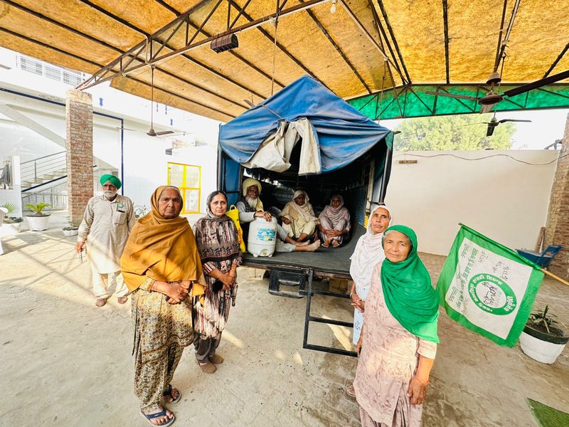 The farmers are going door to door in villages to collect ration for the ‘Dilli Chalo’ march from the Khanauri