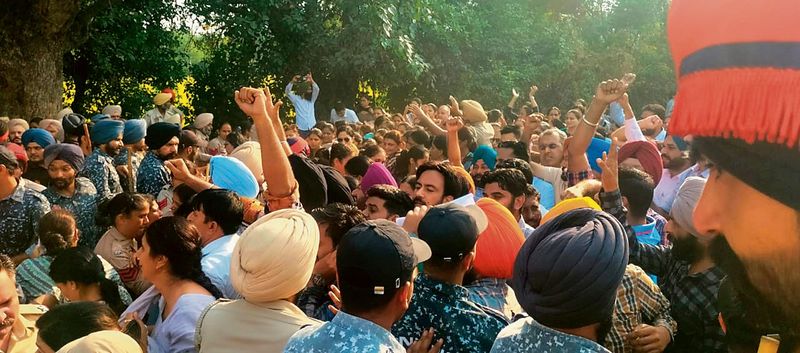 A scuffle broke out between hundreds of protesting guest faculty assistant professors and the police on the Sangrur-Patiala highway near