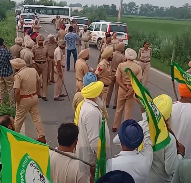 Tensions flared in Jahlan village here on Wednesday as police moved in to remove alleged illegal encroachments on a disputed