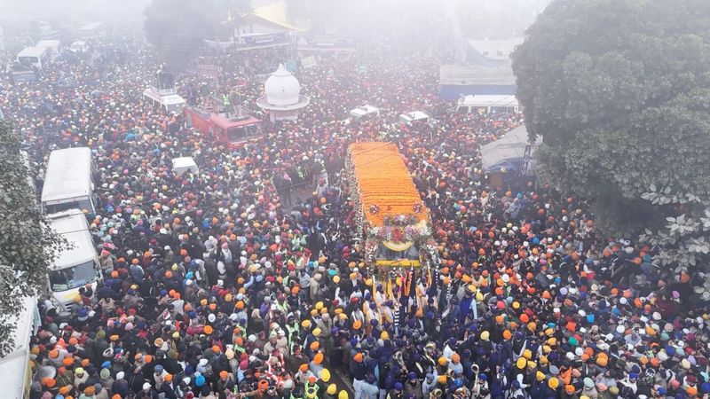 Devotees take part in a nagar kirtan at Fatehgarh Sahib on Saturday. tribune photo: RAJESH SACHAR The three-day Shaheedi Sabha