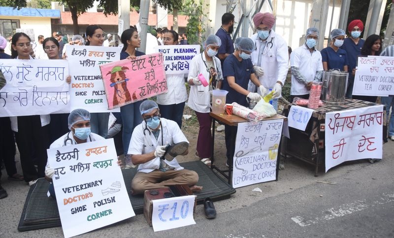 ਵੈਟਰਨਰੀ ਸਟੂਡੈਂਟਸ ਯੂਨੀਅਨ ਦੀ ਅਗਵਾਈ ਹੇਠ ਇਥੋਂ ਦੀ ਵੈਟਰਨਰੀ ’ਵਰਸਿਟੀ ਦੇ ਵਿਦਿਆਰਥੀਆਂ ਦਾ ਧਰਨਾ ਅੱਜ ਵੀ ਜਾਰੀ ਰਿਹਾ। ਅੱਜ ਵਿਦਿਆਰਥੀਆਂ