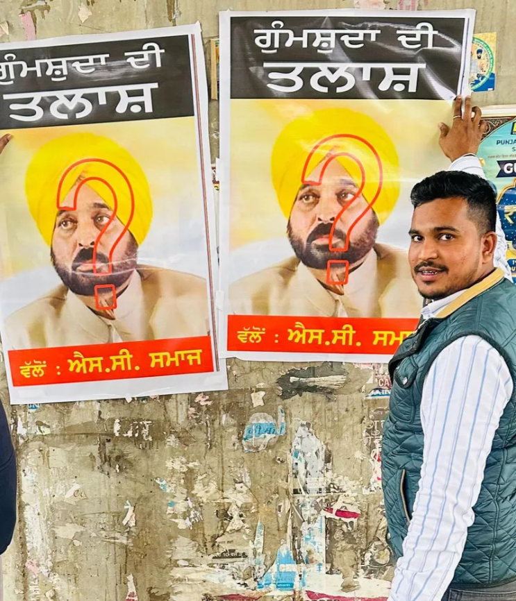ਸ਼ਹਿਰ ਦੇ ਵੱਖ-ਵੱਖ ਹਿੱਸਿਆਂ ਵਿੱਚ ਮੁੱਖ ਮੰਤਰੀ ਭਗਵੰਤ ਮਾਨ ਦੀ ਗੁੰਮਸ਼ੁਦਗੀ ਦੇ ਪੋਸਟਰ ਲੱਗੇ ਦੇਖੇ ਗਏ ਹਨ। ਇਹ ਪੋਸਟਰ ਪੰਜਾਬ