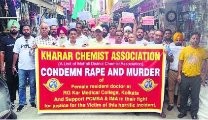 ਕੋਲਕਾਤਾ ਕਾਂਡ ਦੇ ਵਿਰੋਧ ’ਚ ਅੱਜ ਇੱਥੇ ਕਸਬਾ ਸਨੇਟਾ ਦੇ ਕੈਮਿਸਟਾਂ ਅਤੇ ਡਾਕਟਰਾਂ ਨੇ ਪ੍ਰਦਰਸ਼ਨ ਕਰਦਿਆਂ ਦੋਸ਼ੀਆਂ ਨੂੰ ਫਾਂਸੀ ਦੀ