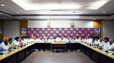ਸ਼੍ਰੋਮਣੀ ਅਕਾਲੀ ਦਲ ਦੇ ਪ੍ਰਧਾਨ ਸੁਖਬੀਰ ਸਿੰਘ ਬਾਦਲ ਦੀ ਅਗਵਾਈ ਹੇਠ ਚੰਡੀਗੜ੍ਹ ਸਥਿਤ ਪਾਰਟੀ ਦਫ਼ਤਰ ਵਿੱਚ ਨਵੀਂ ਕੋਰ ਕਮੇਟੀ ਦੀ