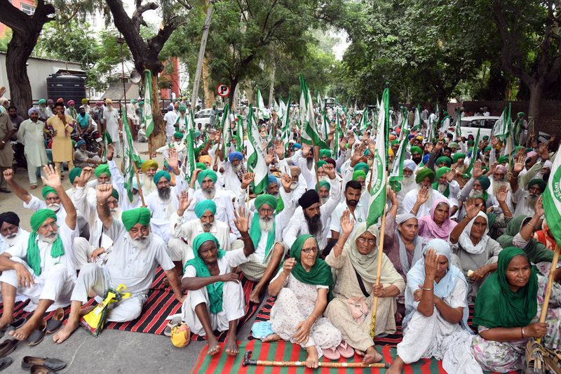 BKU (Sidhupur) activists stage a dharna in Bathinda on Monday. Tribune photo: Pawan Sharma Farmers, under the banner of the